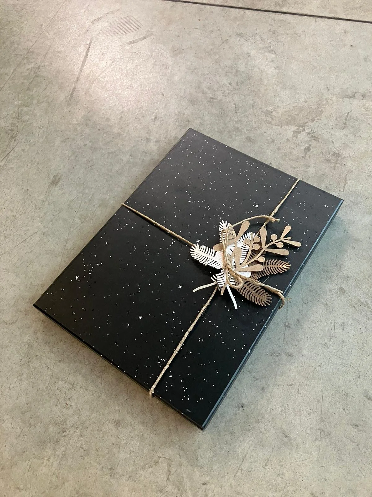 I am thrilled to finally share with you my latest accomplishment, which took place in October. I am delighted to present to you the very first Sempreverde engagement! This project has been incredibly exciting for me as I had the opportunity to design the floral decorations for Golden Goose's Christmas packages. The decorations consist of delicate Paper Cuts depicting iconic Christmas plants such as the Butcher's Broom, Mistletoe, and the Pine Tree adorned with its charming pine cone.